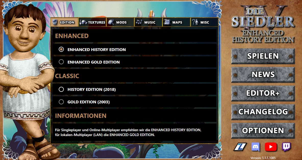 - The Enhanced Edition Launcher can now also be run without a preinstalled History Edition.